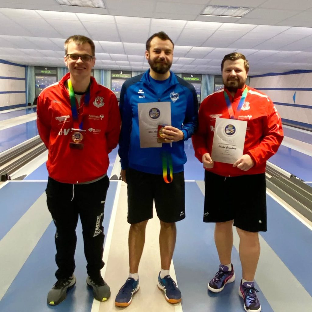 Bei den Herren schied Jörg Hofer (527 Kegle) bereits nach dem Vorlauf aus. Dirk Barbanes (561 & 547 Kegel) belegte Platz Sieben. Ein Ausrufezeichen setzte Rico Achsnig. Mit 589 Kegel im Vorlauf und 583 Kegel im Endlauf und der am Ende höchsten Gesamtkegelzahl aller Altersklassen, sicherte er sich hochverdient den Bezirksmeistertitel.
